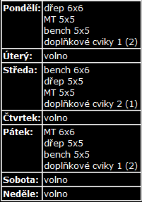 Doplňkové cviky střídáte ob trénink, v praxi může trénik vypadat takto:
